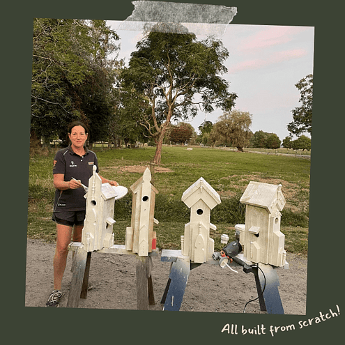 My Mother's partner (Mother's lover) can make anything from scratch. One day I asked him to make me a couple of rustic birdhouses. I had a lot of interest from friends and we started custom making them. When the demand grew and the males in my life got busy with life on the farm, I decided I'd take matters into my own hands and asked for a drop saw for Christmas.